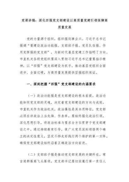 【七哥公文】2025年:党课讲稿:深化四强党支部建设以高质量党建引领保障高质量发展+更多免费公文+VX:QiGeGongWen2024