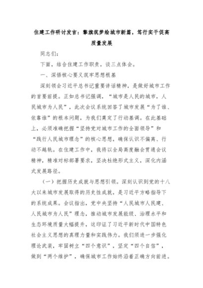 【七哥公文】2025年:住建工作研讨发言:擎旗筑梦绘城市新篇,笃行实干促高质量发展+更多免费公文+VX:QiGeGongWen2024