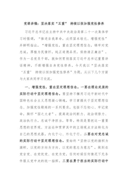 / 【七哥公文】2025年:党课讲稿:坚决落实“五重” 持续以恒加强党性修养+更多免费公文+VX:QiGeGongWen2024