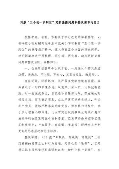 【七哥公文】2025年:对照“五个进一步到位”更新查摆问题和整改清单内容2+更多免费公文+VX:QiGeGongWen2024