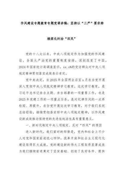 【七哥公文】2025年:作风建设专题教育专题党课讲稿:坚持以“三严”要求持续深化纠治“四风”+更多免费公文+VX:QiGeGongWen2024