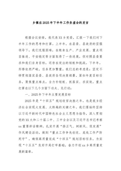 / 【七哥公文】2025年:乡镇在2025年下半年工作务虚会的发言+更多免费公文+VX:QiGeGongWen2024