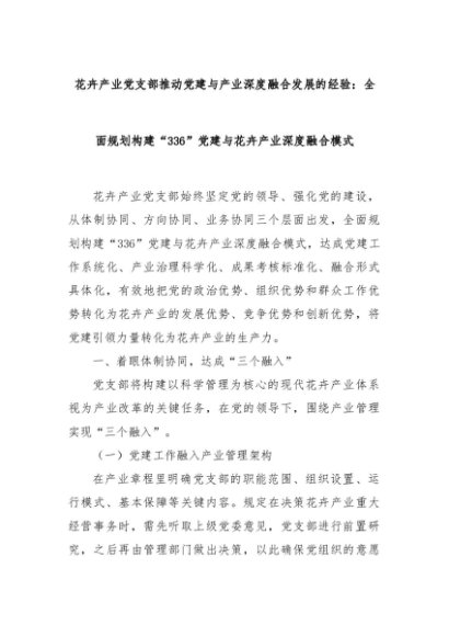 【七哥公文】2025年:花卉产业党支部推动党建与产业深度融合发展的经验:全面规划构建“336”党建与花卉产业深度融合模式+更多免费公文+VX:QiGeGongWen2024