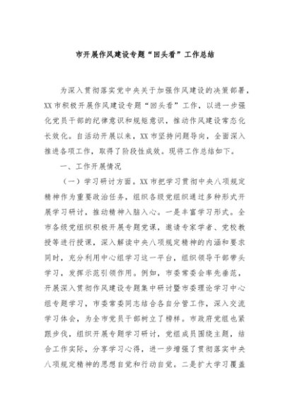 / 【七哥公文】2025年:市开展作风建设专题“回头看”工作总结+更多免费公文+VX:QiGeGongWen2024