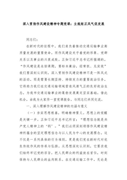 / 【七哥公文】2025年:深入贯彻作风建设精神专题党课:立规矩正风气促发展+更多免费公文+VX:QiGeGongWen2024