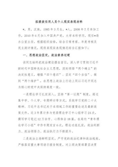 / 【七哥公文】2025年:拟提拔任用人员个人现实表现材料+更多免费公文+VX:QiGeGongWen2024