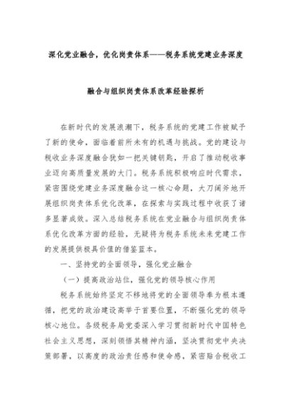【七哥公文】2025年:深化党业融合,优化岗责体系——税务系统党建业务深度融合与组织岗责体系改革经验探析+更多免费公文+VX:QiGeGongWen2024