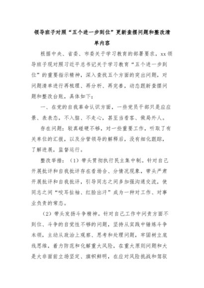 【七哥公文】2025年:领导班子对照“五个进一步到位”更新查摆问题和整改清单内容+更多免费公文+VX:QiGeGongWen2024