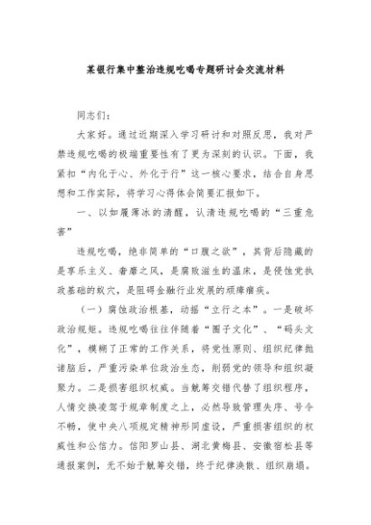 / 【七哥公文】2025年:某银行集中整治违规吃喝专题研讨会交流材料+更多免费公文+VX:QiGeGongWen2024