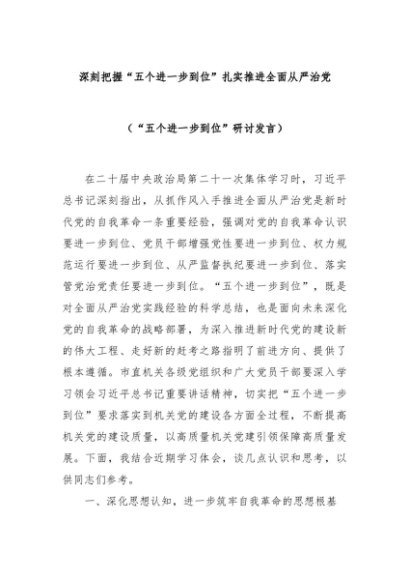 【七哥公文】2025年:深刻把握“五个进一步到位”扎实推进全面从严治党(“五个进一步到位”研讨发言)+更多免费公文+VX:QiGeGongWen2024