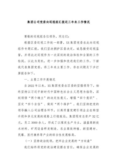 / 【七哥公文】2025年:集团公司党委向巡视组汇报近三年来工作情况+更多免费公文+VX:QiGeGongWen2024