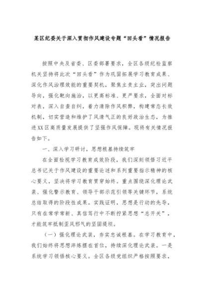 【七哥公文】2025年:某区纪委关于深入贯彻作风建设专题“回头看”情况报告+更多免费公文+VX:QiGeGongWen2024