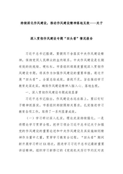 【七哥公文】2025年:持续深化作风建设,推动作风建设精神落地见效——关于深入贯彻作风建设专题“回头看”情况报告+更多免费公文+VX:QiGeGongWen2024