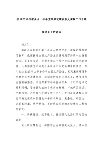 【七哥公文】2025年:在2025年国有企业上半年党风廉政建设和反腐败工作专题推进会上的讲话+更多免费公文+VX:QiGeGongWen2024