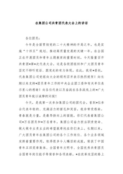 / 【七哥公文】2025年:在集团公司共青团代表大会上的讲话+更多免费公文+VX:QiGeGongWen2024