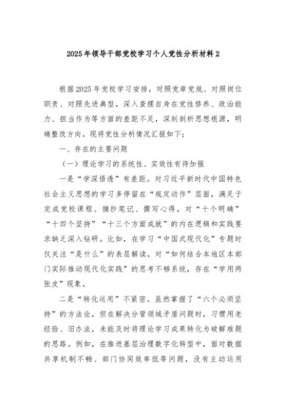 / 【七哥公文】2025年:2025年领导干部党校学习个人党性分析材料2+更多免费公文+VX:QiGeGongWen2024