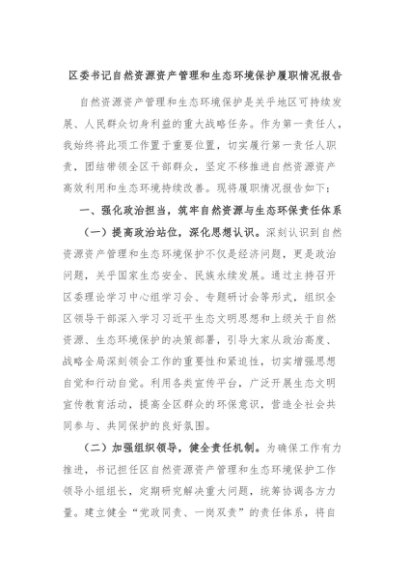 【七哥公文】2025年:区委书记自然资源资产管理和生态环境保护履职情况报告+更多免费公文+VX:QiGeGongWen2024