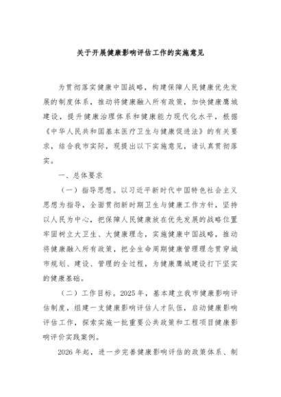 【七哥公文】2025年:关于开展健康影响评估工作的实施意见+更多免费公文+VX:QiGeGongWen2024