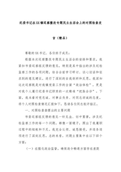 【七哥公文】2025年:纪委书记在XX镇巡察整改专题民主生活会上的对照检查发言(精品)+更多免费公文+VX:QiGeGongWen2024