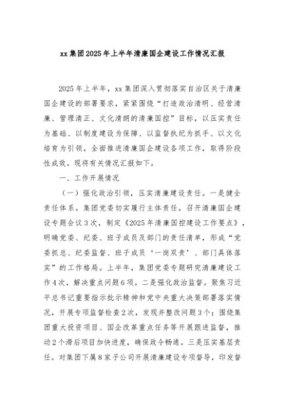 / 【七哥公文】2025年:xx集团2025年上半年清廉国企建设工作情况汇报+更多免费公文+VX:QiGeGongWen2024