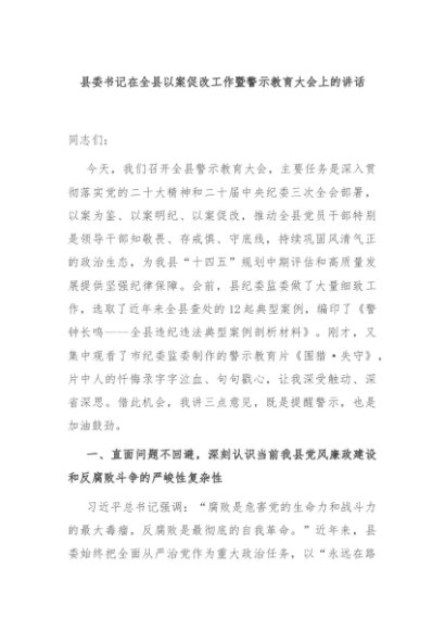 / 【七哥公文】2025年:县委书记在全县以案促改工作暨警示教育大会上的讲话+更多免费公文+VX:QiGeGongWen2024