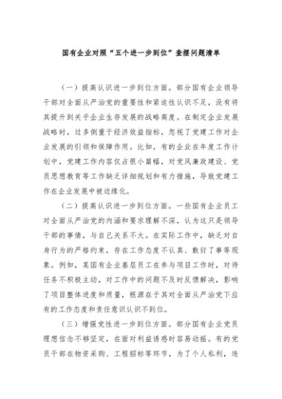 / 【七哥公文】2025年:国有企业对照“五个进一步到位”查摆问题清单+更多免费公文+VX:QiGeGongWen2024