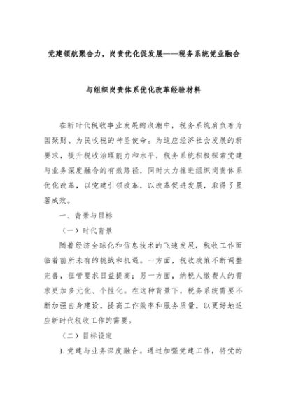 【七哥公文】2025年:党建领航聚合力,岗责优化促发展——税务系统党业融合与组织岗责体系优化改革经验材料+更多免费公文+VX:QiGeGongWen2024