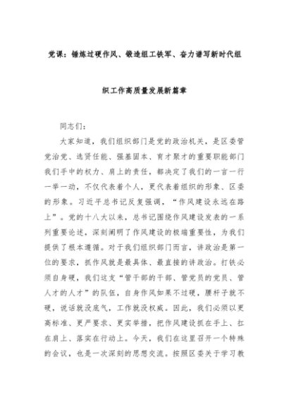 【七哥公文】2025年:党课:锤炼过硬作风、锻造组工铁军、奋力谱写新时代组织工作高质量发展新篇章+更多免费公文+VX:QiGeGongWen2024