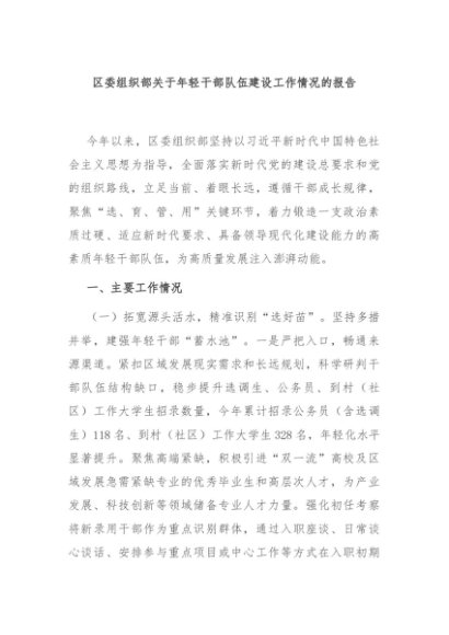 / 【七哥公文】2025年:区委组织部关于年轻干部队伍建设工作情况的报告+更多免费公文+VX:QiGeGongWen2024