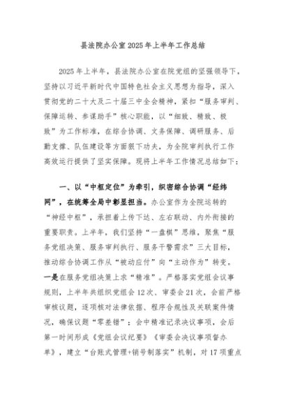 / 【七哥公文】2025年:县法院办公室2025年上半年工作总结+更多免费公文+VX:QiGeGongWen2024