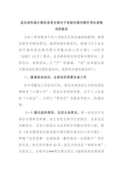 【七哥公文】2025年:县住房和城乡建设局党支部关于违规吃喝问题专项自查情况的报告+更多免费公文+VX:QiGeGongWen2024