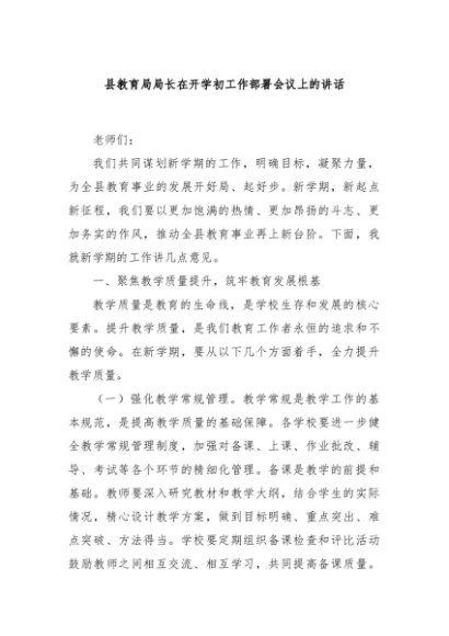 / 【七哥公文】2025年:县教育局局长在开学初工作部署会议上的讲话+更多免费公文+VX:QiGeGongWen2024