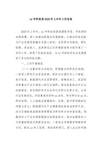 / 【七哥公文】2025年:xx市科技局2025年上半年工作总结+更多免费公文+VX:QiGeGongWen2024