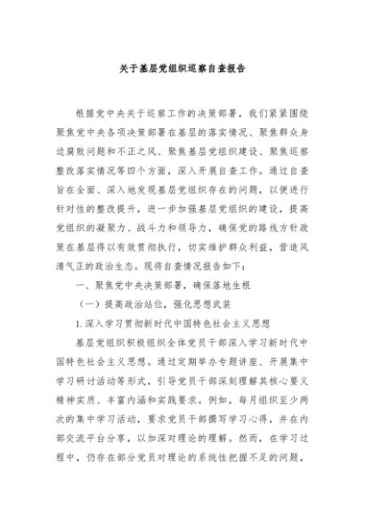 / 【七哥公文】2025年:关于基层党组织巡察自查报告+更多免费公文+VX:QiGeGongWen2024