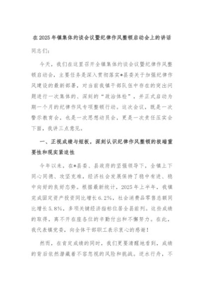 【七哥公文】2025年:在2025年镇集体约谈会议暨纪律作风整顿启动会上的讲话+更多免费公文+VX:QiGeGongWen2024