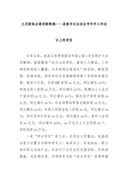 【七哥公文】2025年:立足新起点谋求新跨越——县委书记在在全市半年工作会议上的发言+更多免费公文+VX:QiGeGongWen2024