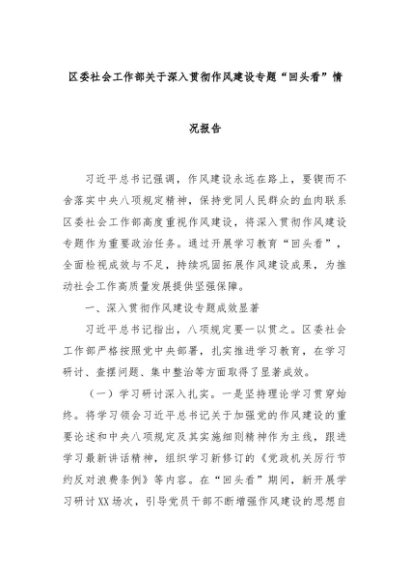 【七哥公文】2025年:区委社会工作部关于深入贯彻作风建设专题“回头看”情况报告+更多免费公文+VX:QiGeGongWen2024