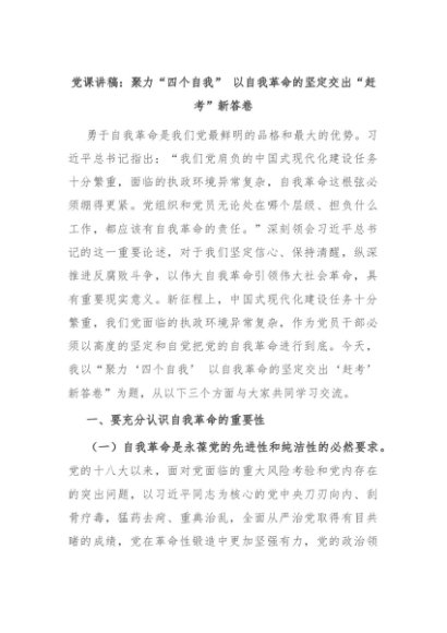 【七哥公文】2025年:党课讲稿:聚力“四个自我” 以自我革命的坚定交出“赶考”新答卷+更多免费公文+VX:QiGeGongWen2024