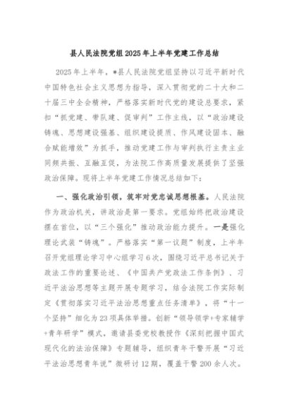 / 【七哥公文】2025年:县人民法院党组2025年上半年党建工作总结+更多免费公文+VX:QiGeGongWen2024