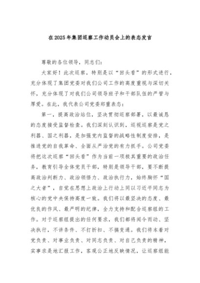 / 【七哥公文】2025年:在2025年集团巡察工作动员会上的表态发言+更多免费公文+VX:QiGeGongWen2024