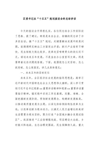 / 【七哥公文】2025年:区委书记在“十五五”规划座谈会的总结讲话+更多免费公文+VX:QiGeGongWen2024
