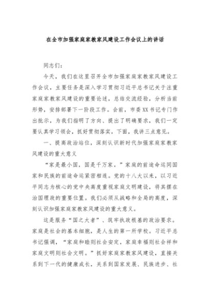 / 【七哥公文】2025年:在全市加强家庭家教家风建设工作会议上的讲话+更多免费公文+VX:QiGeGongWen2024