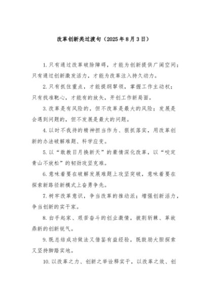 / 【七哥公文】2025年:改革创新类过渡句(2025年8月3日)+更多免费公文+VX:QiGeGongWen2024