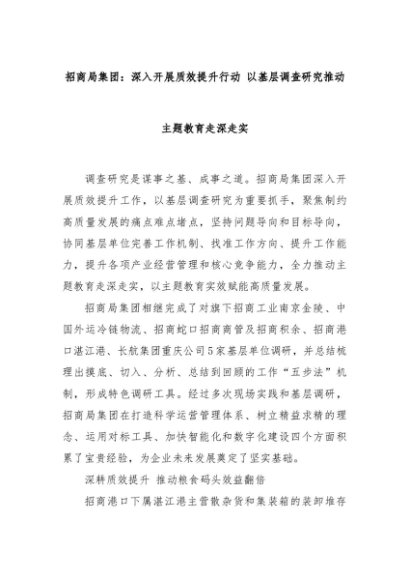 【七哥公文】2025年:招商局集团:深入开展质效提升行动 以基层调查研究推动主题教育走深走实+更多免费公文+VX:QiGeGongWen2024