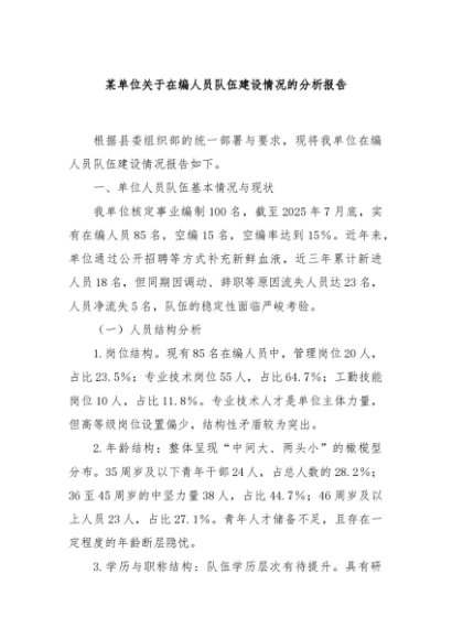 / 【七哥公文】2025年:某单位关于在编人员队伍建设情况的分析报告+更多免费公文+VX:QiGeGongWen2024
