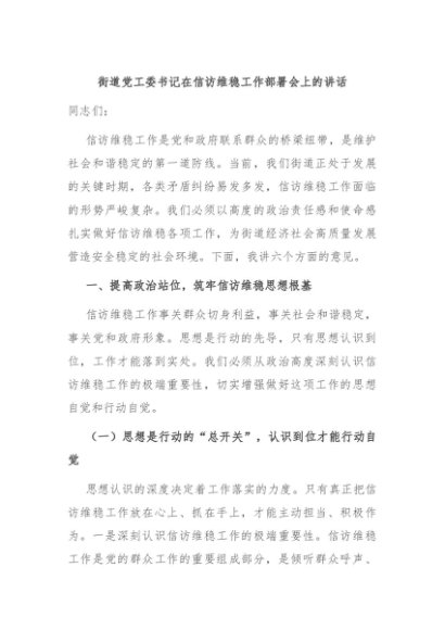 / 【七哥公文】2025年:街道党工委书记在信访维稳工作部署会上的讲话+更多免费公文+VX:QiGeGongWen2024