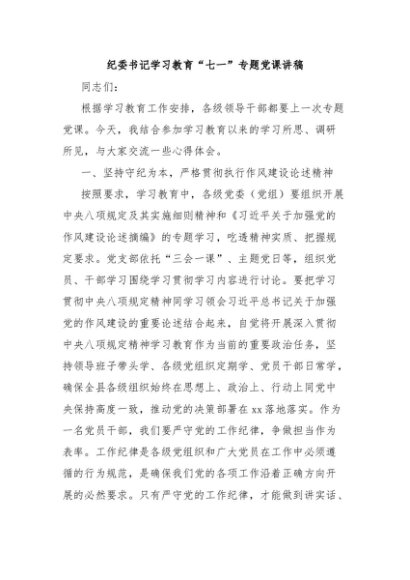 / 【七哥公文】2025年:纪委书记学习教育“七一”专题党课讲稿+更多免费公文+VX:QiGeGongWen2024