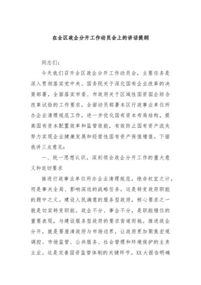 【七哥公文】2025年:在全区政企分开工作动员会上的讲话提纲+更多免费公文+VX:QiGeGongWen2024