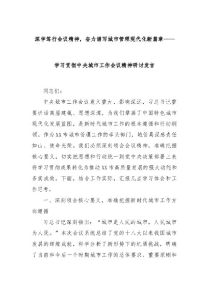 【七哥公文】2025年:深学笃行会议精神,奋力谱写城市管理现代化新篇章——学习贯彻中央城市工作会议精神研讨发言+更多免费公文+VX:QiGeGongWen2024