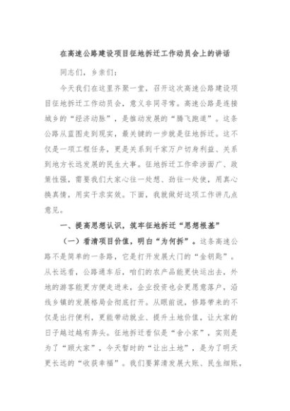 / 【七哥公文】2025年:在高速公路建设项目征地拆迁工作动员会上的讲话+更多免费公文+VX:QiGeGongWen2024